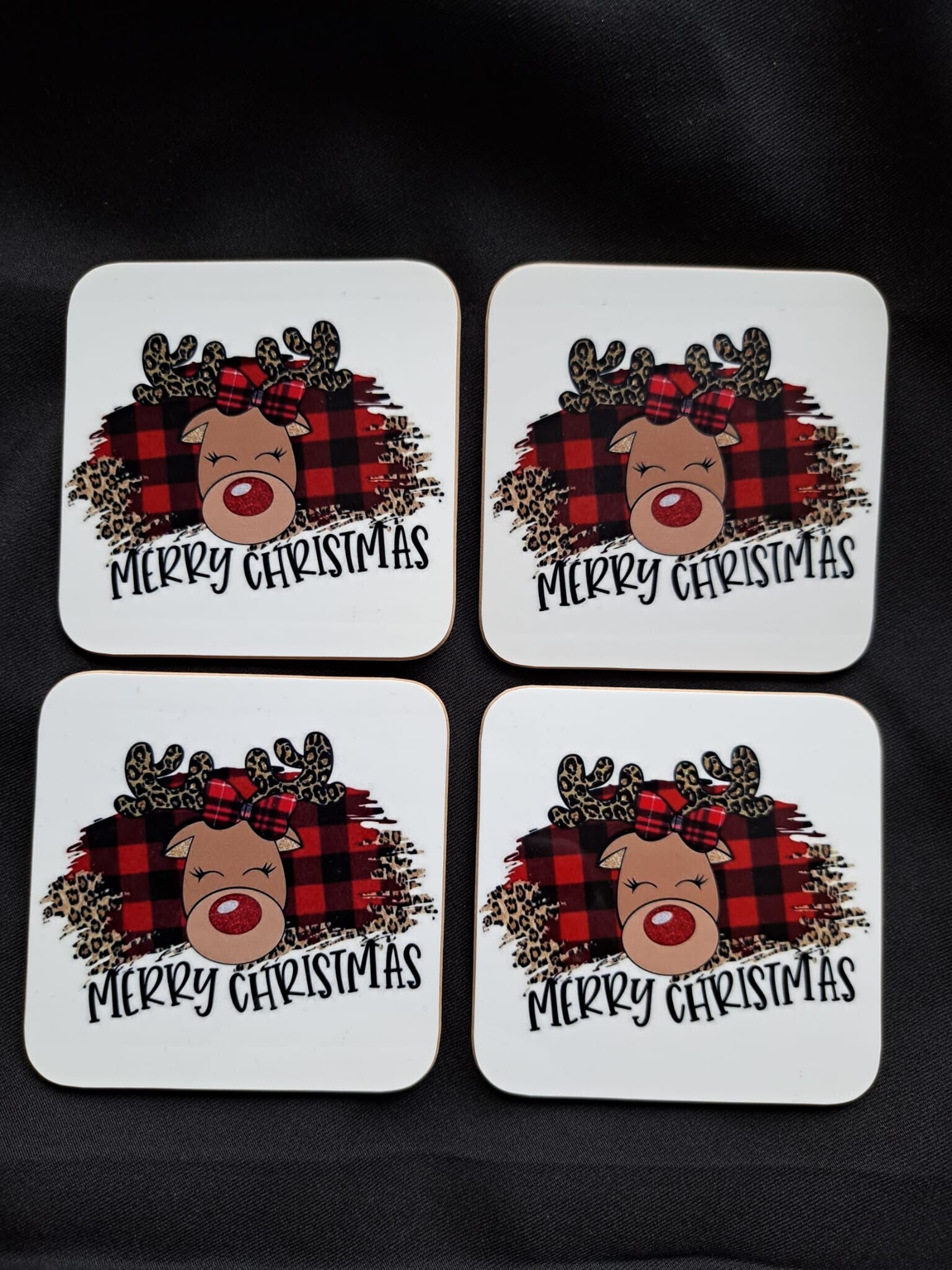 Onderzetters Kerst hert met panterprint (4 Stuks)